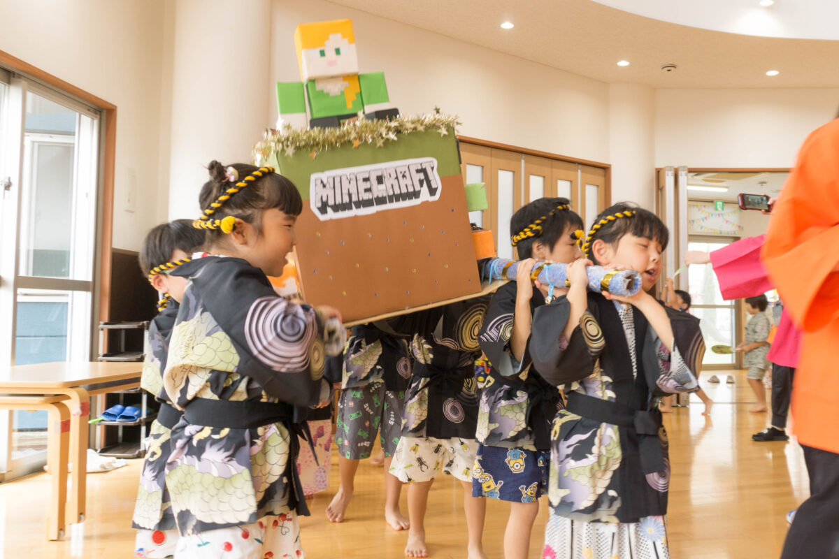 宙組さんは人気ゲーム、マインクラフトをモチーフにしたお神輿!ブロック一つ一つまでこだわりが詰まっていました。